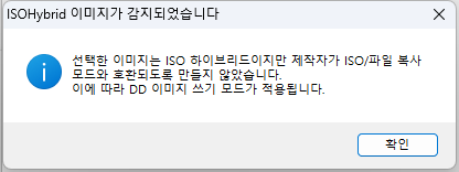 DD 모드 적용 메세지가 뜨면 확인 클릭 후 시작 버튼을 누릅니다.