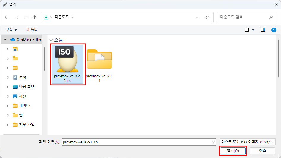 이름 지정, USB 내에 있는 ISO 파일 선택