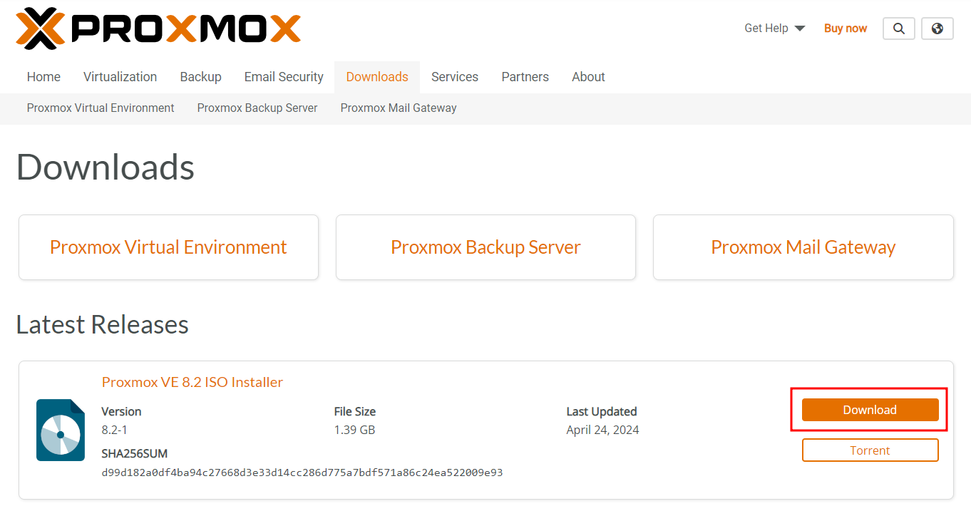 Proxmox VE 8.2 ISO Installer Version 8.2-1 File Size 1.39 GB Last Updated April 24, 2024 SHA256SUM d99d182a0df4ba94c27668d3e33d14cc286d775a7bdf571a86c24ea522009e93