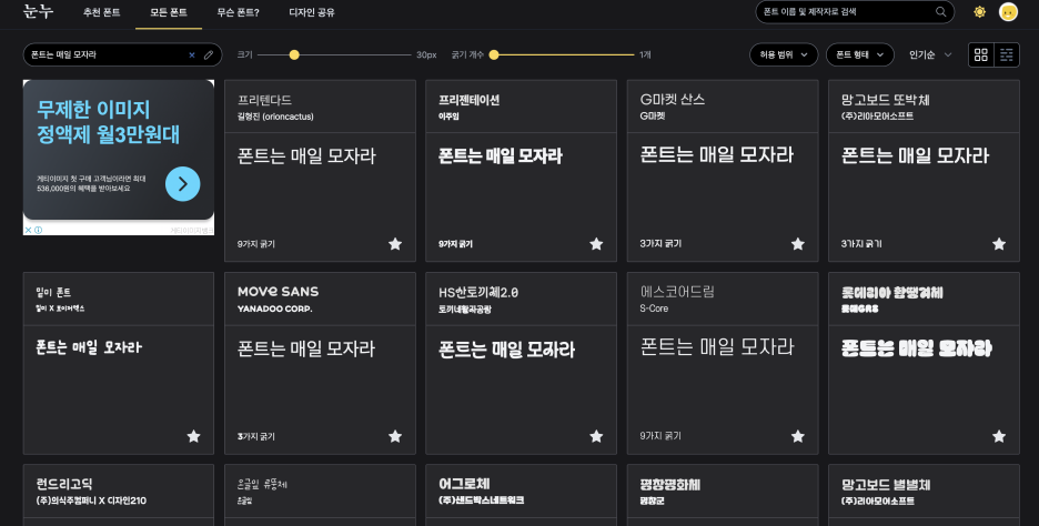 웹폰트부터 파일 폰트, 무료부터 유료까지 엄청난 양의 폰트를 찾을 수 있는 눈누!