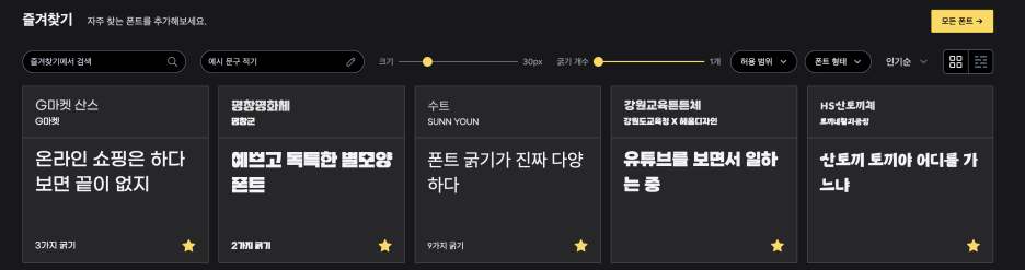 서체 미리보기 기능, 허용 범위 필터링으로 원하는 폰트 찾기 아주 쉬워요