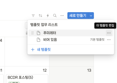 캘린더의 우측 상단에 👉🏻새로 만들기 👉🏻새 템플릿