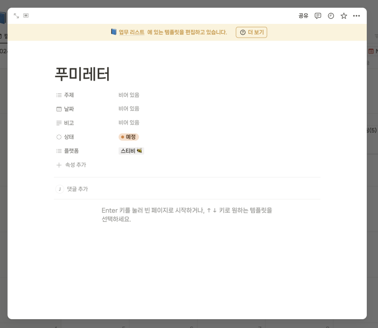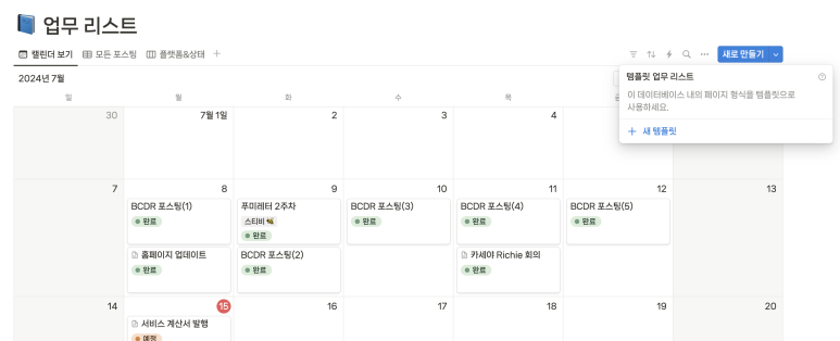 그리고 다시 👉🏻새로 만들기를 누르면 템플릿이 추가되어 있어요