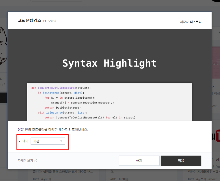 코드 문법 강조 플러그인 선택
