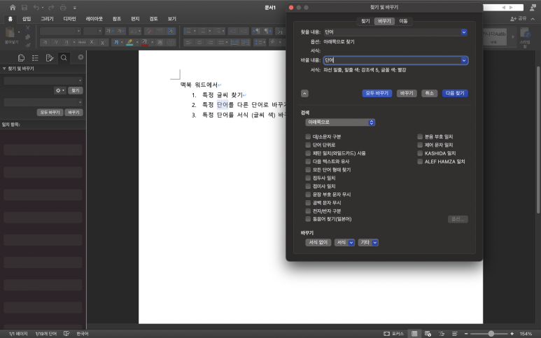 맥북에서 특정 단어 바꾸기, 단어의 색깔이나 글꼴 서식 등 바꾸기가 맥에서 어떻게 하는지!
