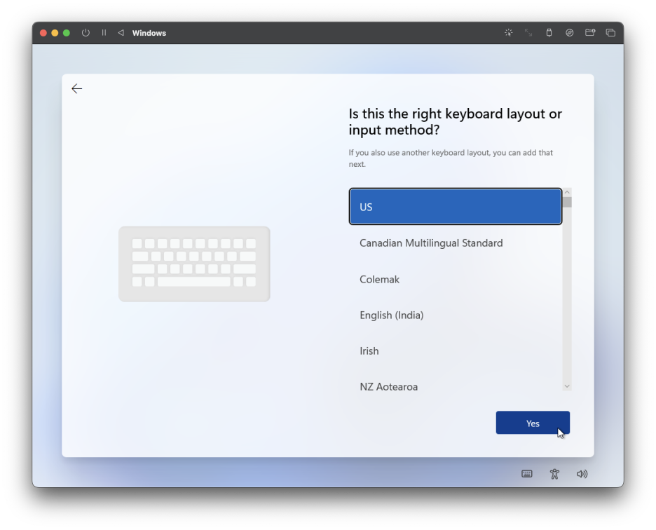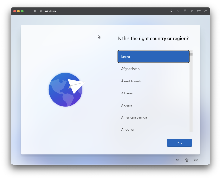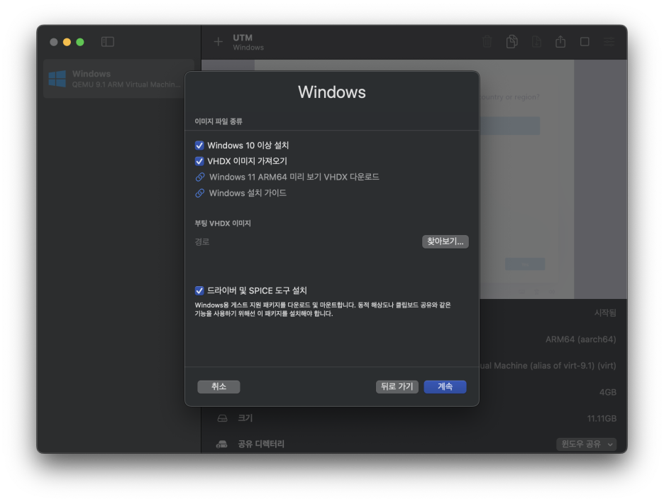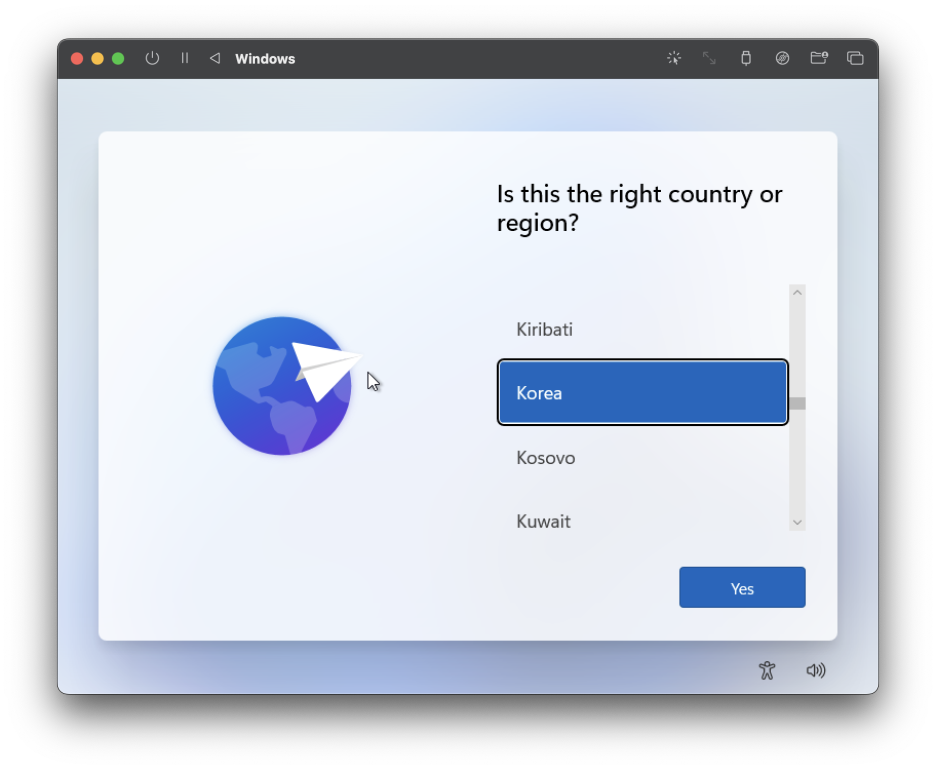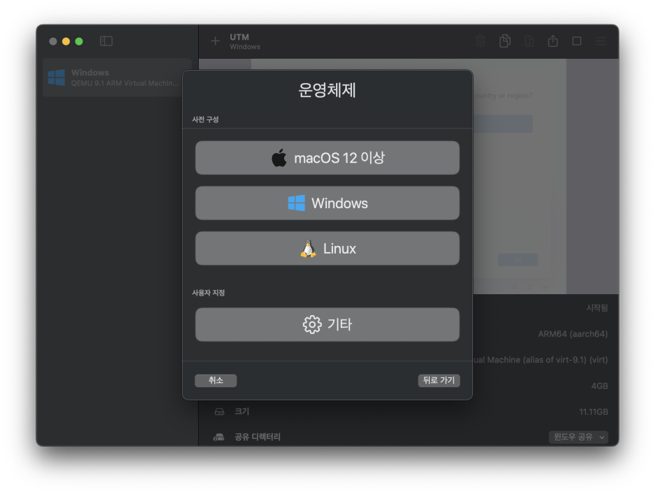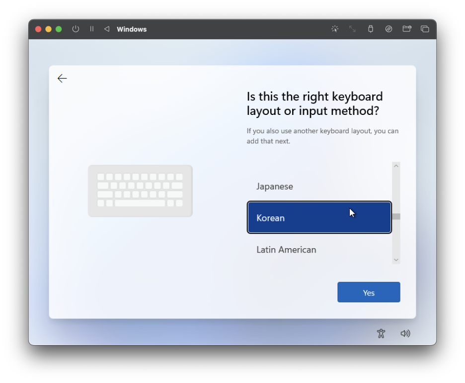 윈도우 가상 머신을 실행하면 이렇게 언어와 키보드 설정이 뜨는데,