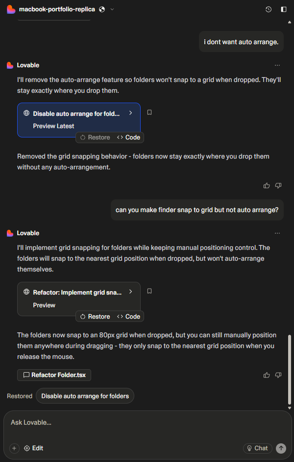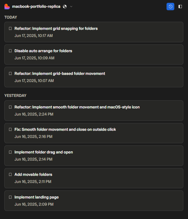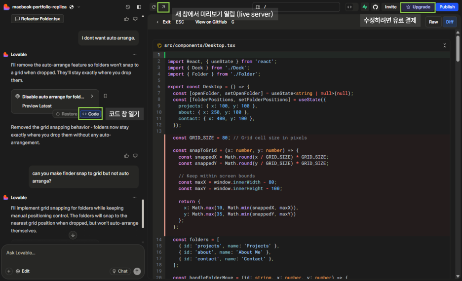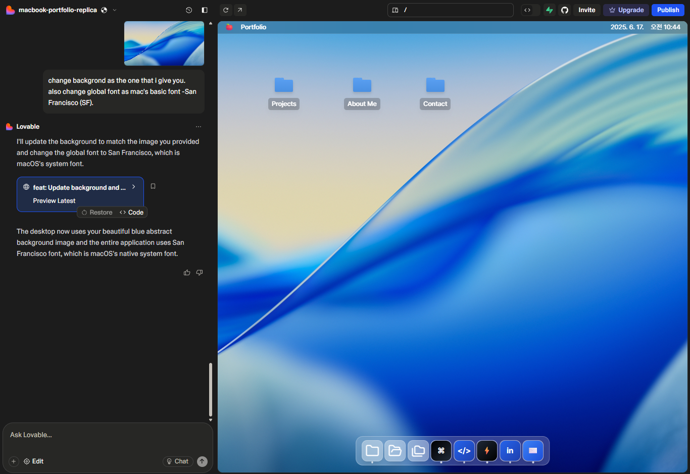 요즘 이런 맥북 화면같은 포트폴리오가 유행이기도 하고, 이거 만들기 참 어렵기 때문에 lovable로 해보면 어떨까 싶었다